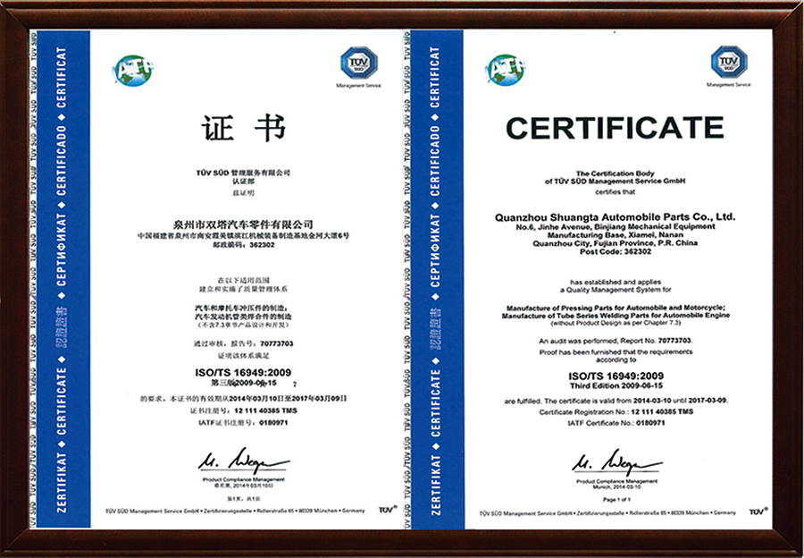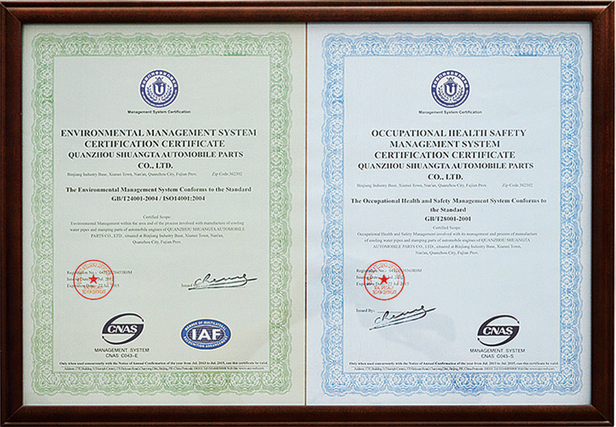 雙塔企業(yè)以汽車(chē)行業(yè)TS16949標(biāo)準(zhǔn)為基礎(chǔ)建立質(zhì)量管理體系,積極推進(jìn)ISO14001:2004環(huán)境管理標(biāo)準(zhǔn)和OHSAS 18001:2007職業(yè)健康安全體系的管理工作。通過(guò)體系延伸,汽車(chē)配件產(chǎn)品質(zhì)量控制由傳統(tǒng)的主機(jī)廠對(duì)供應(yīng)商生產(chǎn)質(zhì)量控制,延伸到原材料供應(yīng)商和輔配件供貨商,全面覆蓋從零配件供應(yīng)商、外協(xié)生產(chǎn)過(guò)程以及現(xiàn)場(chǎng)服務(wù)的質(zhì)量體系,確保全過(guò)程質(zhì)量控制。