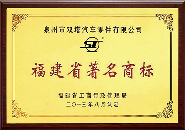2005年由福建省商標(biāo)認(rèn)定委員會(huì)認(rèn)定“ST”為“福建省著名商標(biāo)”,并多次榮獲各級(jí)政府及行業(yè)頒發(fā)的 “工業(yè)明星企業(yè)”、“福建省著名商標(biāo)”、“福建名牌產(chǎn)品”等榮譽(yù)證書(shū),“雙塔”牌汽配系列產(chǎn)品已得到了國(guó)內(nèi)外眾多客商的認(rèn)可。